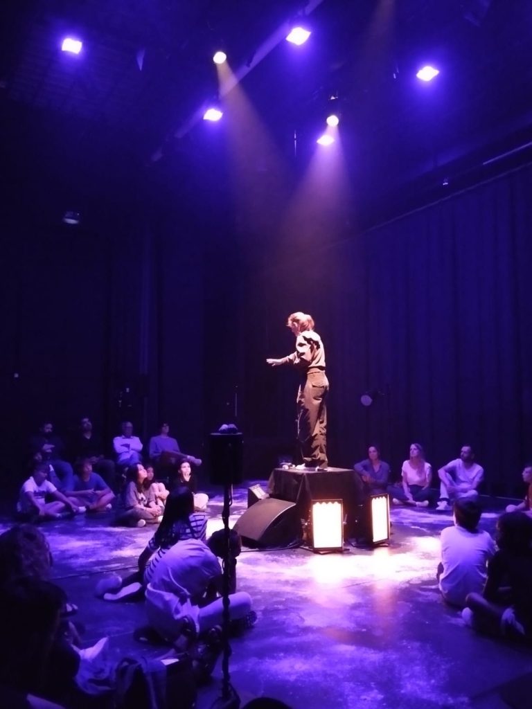 Le spectacle transforme cette disparition en expérience sensible. Les sons se déplacent autour du public, surgissent, s’éteignent, s’entrelacent avec le silence. Chaque souffle, chaque vibration devient un indice, un écho de ce qui n’est plus. La sensation d’absence se mêle à l’émerveillement et à la curiosité, forçant le spectateur à écouter, à percevoir l’invisible et le disparu.